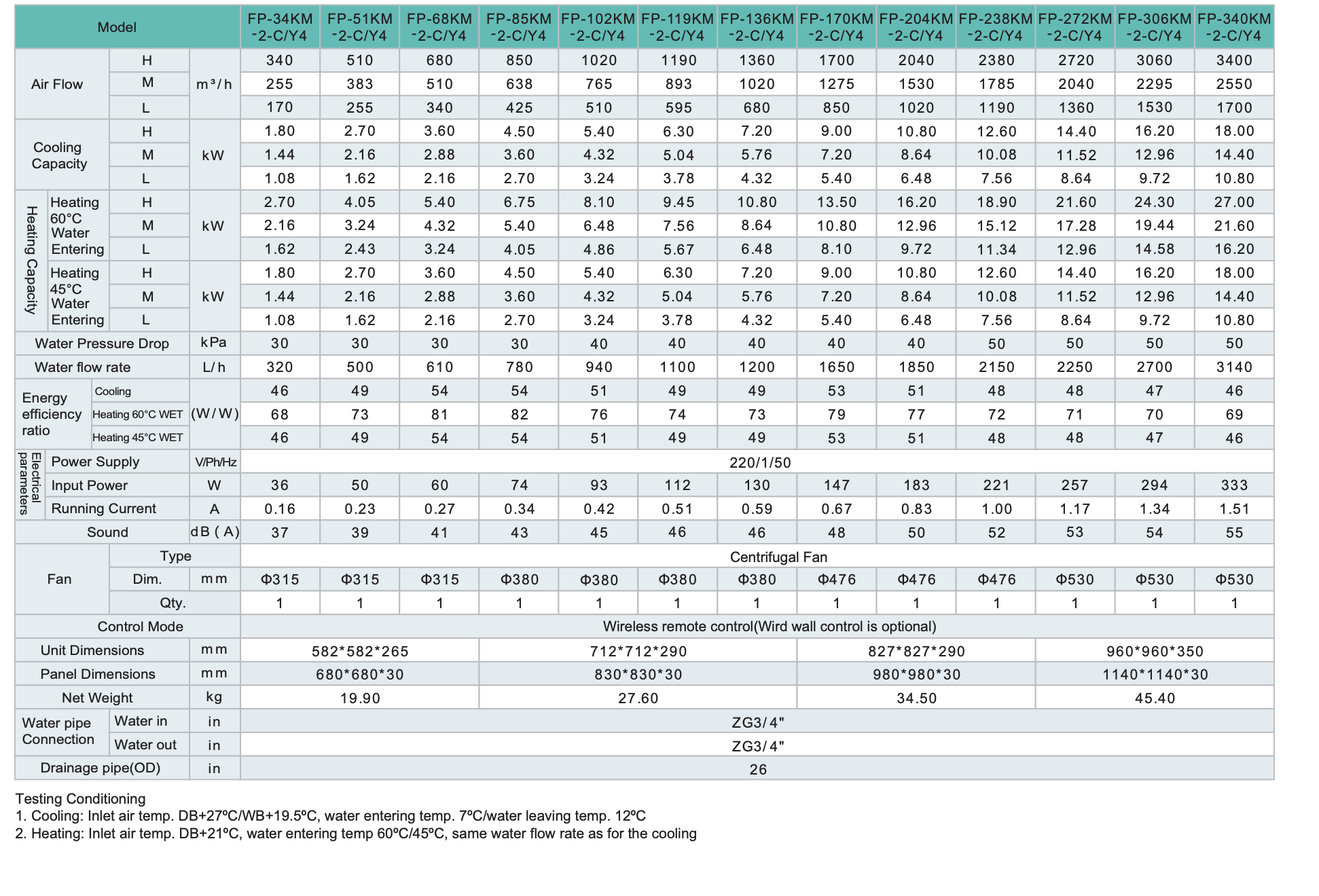 4-way Cassette Fan Coil Unit(AC/EC)