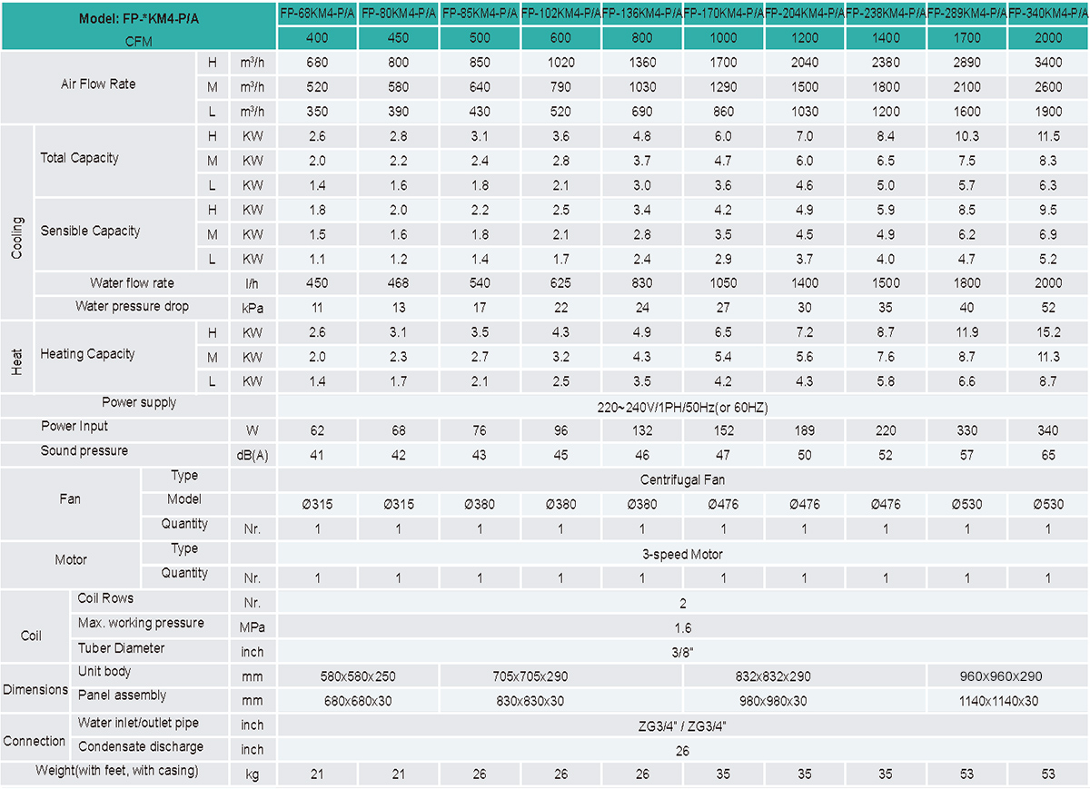 Suitable for hot/chilled water system, ceiling installation;